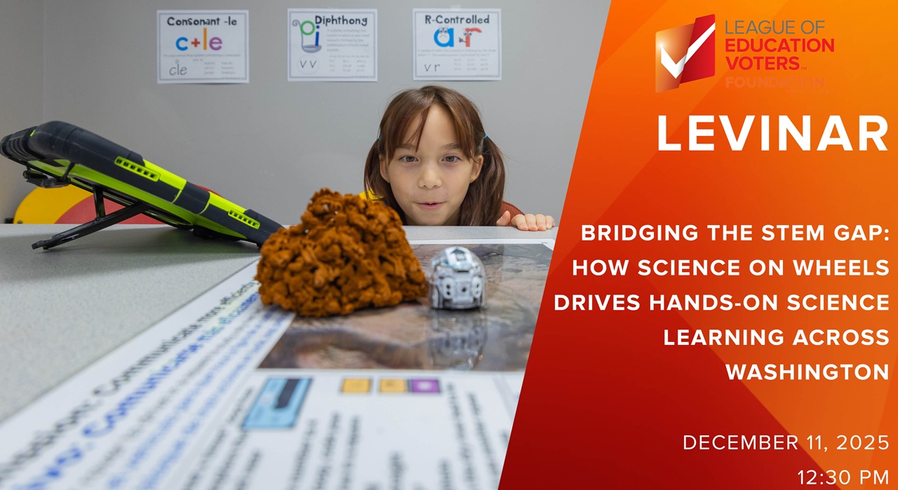 | Upcoming LEVinar: Bridging the STEM Gap: How Science on Wheels Drives Hands-on Science Learning Across Washington Join us for a free webinar tomorrow - December 11 at 12:30 pm for an inspiring look at Science on Wheels, Pacific Science Center’s flagship outreach program and Washington’s largest provider of outreach science education. Since 1974, Science on Wheels has brought interactive, standards-based STEM programming to youth across Washington. This past year, Science on Wheels served over 116,000 learners across 48 legislative districts — 87% of these programs provided at little to no cost in low-income schools and community centers. In this webinar, we’ll explore how Science on Wheels is making hands-on science learning accessible, fun, and engaging. Hear from educators who will share how their classrooms benefited from the program, with students actively engaged in scientific practices like experimentation, critical thinking, and deductive reasoning. |